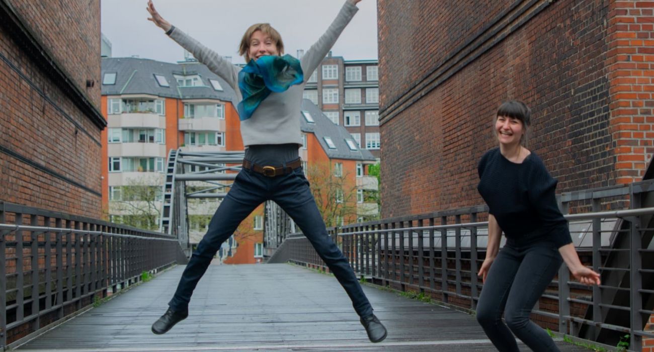 Da sind Freudensprünge angemessen: MITmacher-Geschäftsführerinnen Regina Fröhlich (links) und Anne Busch (rechts) wissen die Arbeit ihres Teams dank AMIF-Bescheid für 3 Jahre gesichert. Foto: Arian