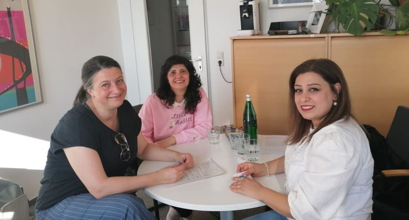 Im Gespräch: Jenny von der AWO, Sanaa von MITmacher und Dimah, Foto: Frishta Yousofi