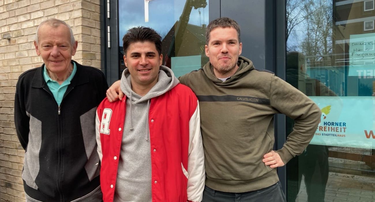 Hier seht ihr unseren Mitmacher Jawad (Mitte) zusammen mit Alex und Herbert vom Stadteilhaus Horner Freiheit.