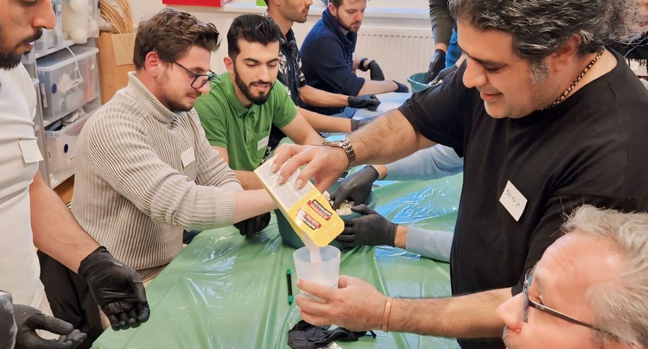 Shiraz, als Leiter des Workshops, erklärte uns geduldig und geschickt die verschiedenen Schritte im Umgang mit Papiermasse. Er achtete auf jeden einzelnen Teilnehmerin und stellte sicher, dass alle den Arbeitsprozess vollständig verstanden und bei Problemen individuell unterstützt wurden. Seine freundliche und unterstützende Art half auch denen, die keine Vorkenntnisse hatten, sich wohlzufühlen und ihre Kreativität ohne Angst vor Fehlern frei auszudrücken.