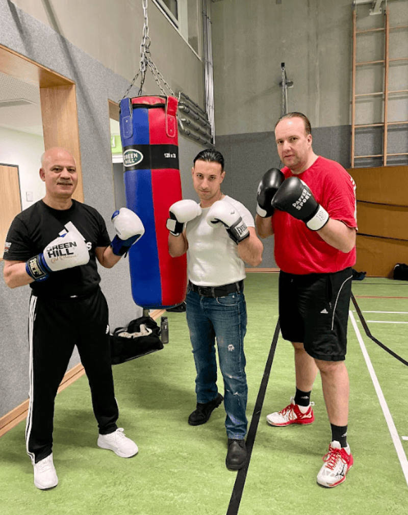 Tadaaa - es dauerte nicht lang, nachdem wir dies im BeratungsgesprÀch erfuhren, schon hatten wir ihn beim TSV Buchholz bei Mahmoud und Lars im Box-Training untergebracht.