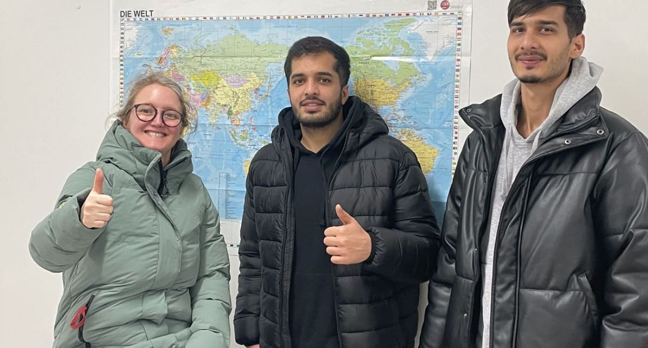 Von links: Joelle (MITmacher), Mohammad Zarif und Wais am Tag des Beratungsgesprächs. Inzwischen sind beide als Fußball-Co-Trainer durchgestartet. Foto: MITmacher