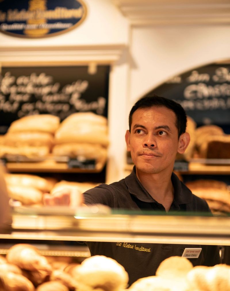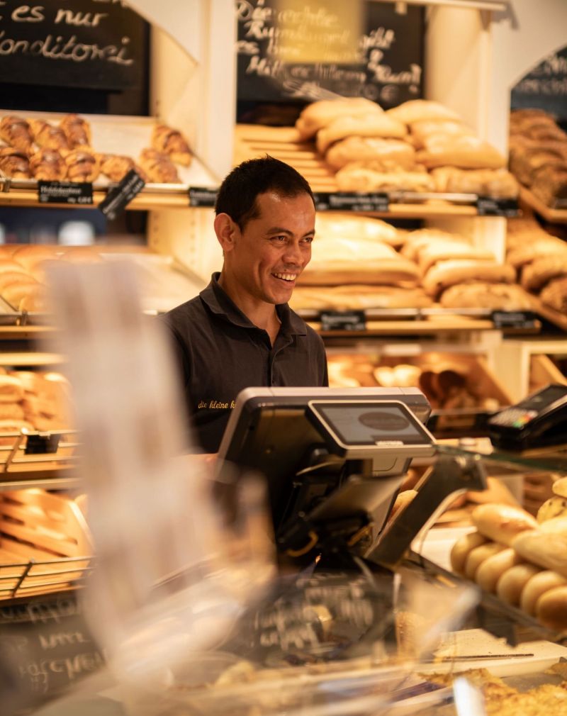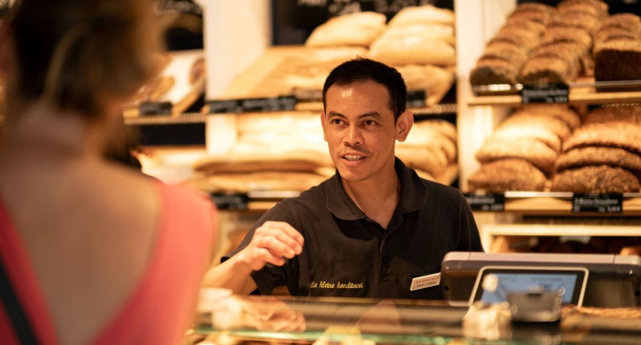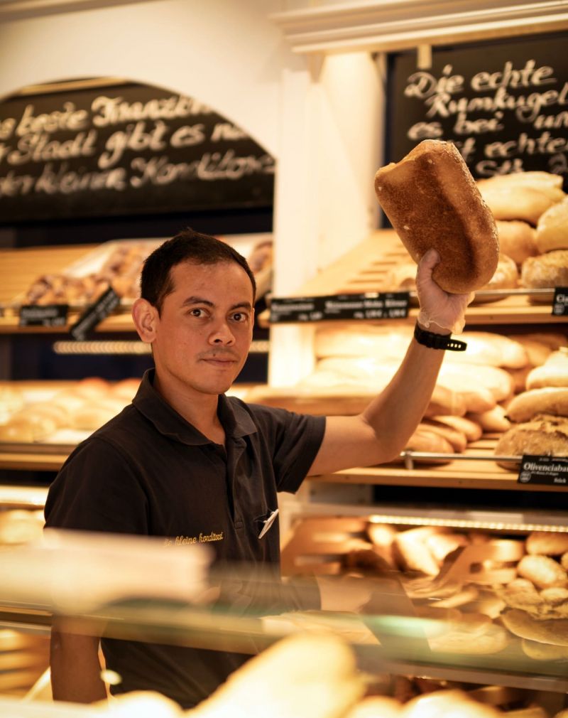 Mitmacher Melvin bei seiner Ausbildung als Bäckereifachverkäufer