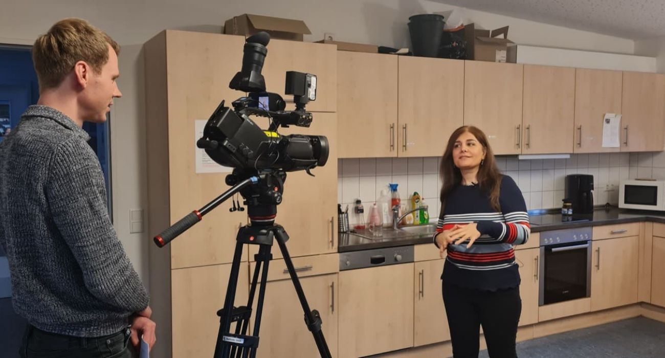 Markus von MITmacher interviewt Mitmacherin Nadia für die neue Videoreihe. Foto: MITmacher