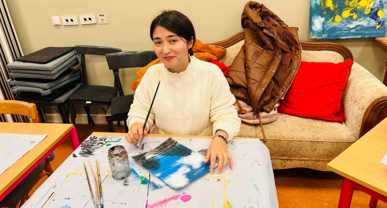Beim Maltreff im Stadtteilkulturzentrum Haus Drei in Altona war sie inzwischen schon das zweite Mal und es gefällt ihr super gut. Sie wurde dort sehr nett empfangen und kann ihrem außerordentlichen Talent freien Lauf lassen.Kaum zu fassen, wenn man ihr Bild sieht: Doch tatsächlich ist es das erste Mal, dass sie mit Acrlyfarben gemalt hat.Mit Bunststiften hat sie als Kind viel gemalt.Wir sind voll hin und weg von ihrem Können!